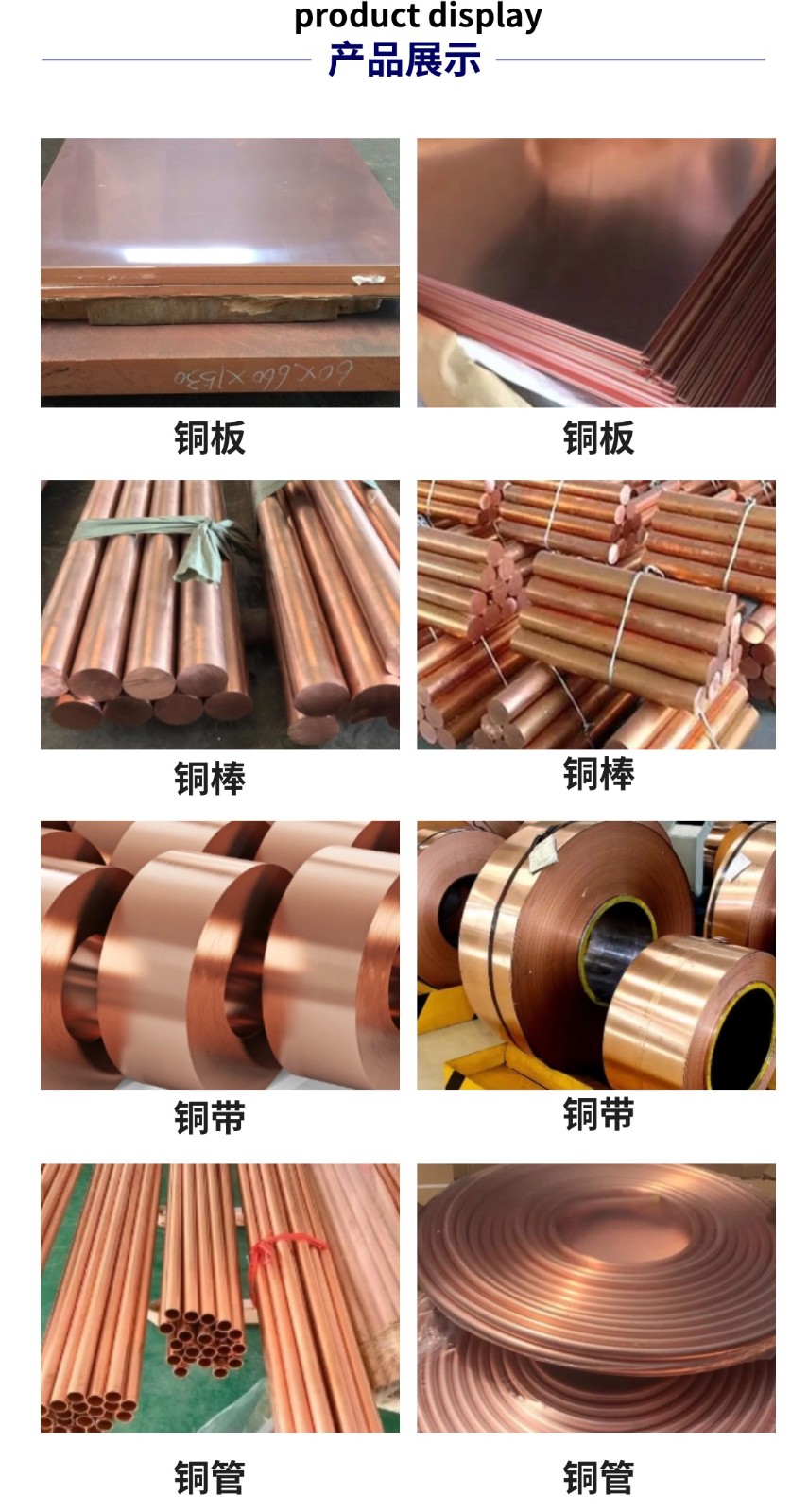 铜排、铜棒、铜板、铜带、铜管等铜材料