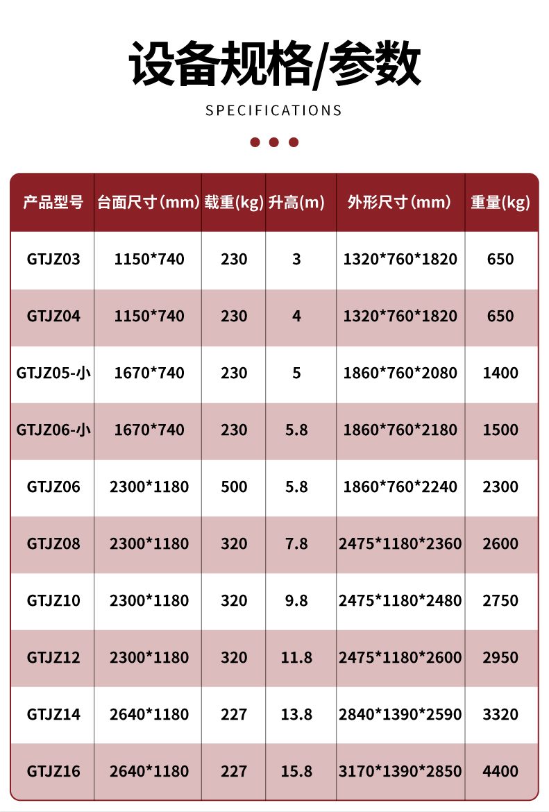 升降作业平台、高空作业车、电动平车、平板式输送机、机械式停车设备等